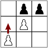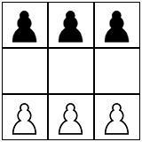 • One of their pawns reaches the other sideHexapawn is a solved game, meaning we can calculate an optimal move from any position. Start by playing several games to get familiar, and see if you can "solve" the game before attempting the questions below.