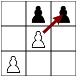 - Hexapawn is a turn-based game using six chess pawns on a \(3 \times 3\) board. White moves first. A piece can either move forward if the space in front of it is empty, or capture an opponent's piece diagonally. A player can win in 3 ways: