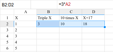 Use formulas to complete the empty columns. You only need to write the three formulas, then drag them down. After your formulas are written, you should have: